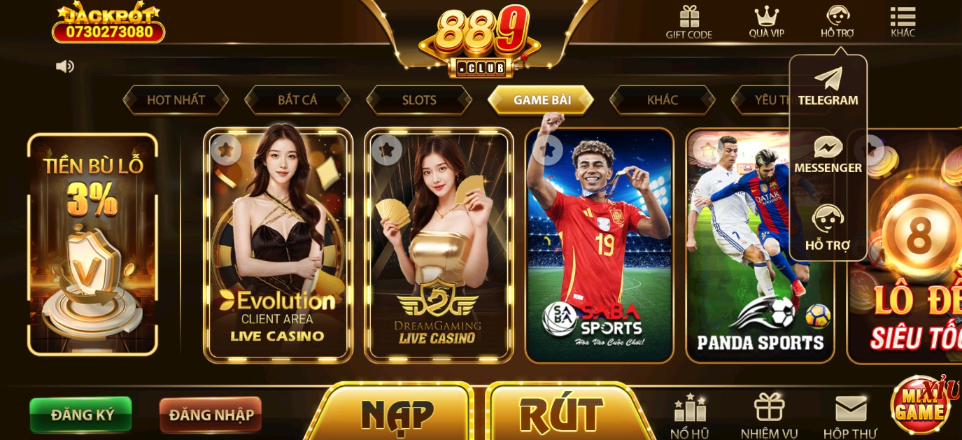 - Kênh Live chat hỗ trợ người chơi tận tình, hoạt động 24/7